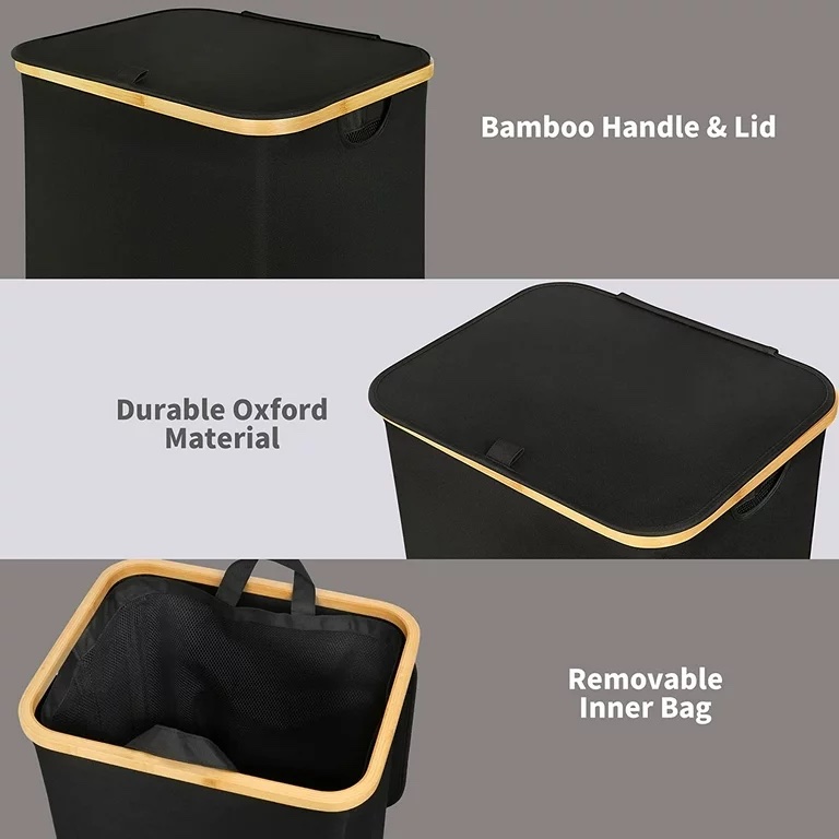• ã€�Laundry Basket with Lid & Bamboo Handles】: There are two bamboo handles on the side of the laundry hamper which makes it easy for you to move it to laundry room, bedroom or child’s room. The lid on the top of the hamper keeps dust out and prevent the spread of peculiar smell. Providing you a tidy environment.