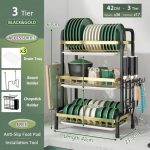 3 TIER RUSTLESS DISH DRAINER & PLATE RACK..BLACK & GOLD