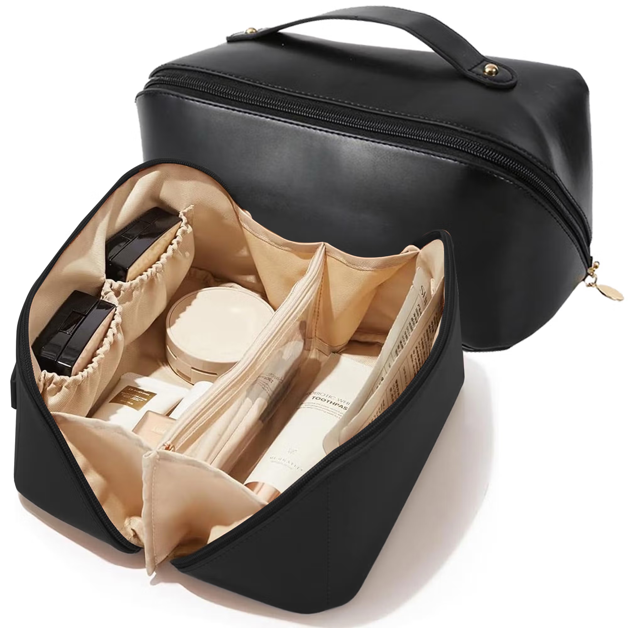Large capacity fits all your cosmetics, brushes, lipstick, nail-polish, eyeshadow and toiletries, perfect for on-the-go.